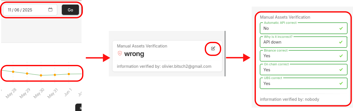 The app permits to manually define the balance occuracy. You can indicates if specific day has wrong value and the reason of why.